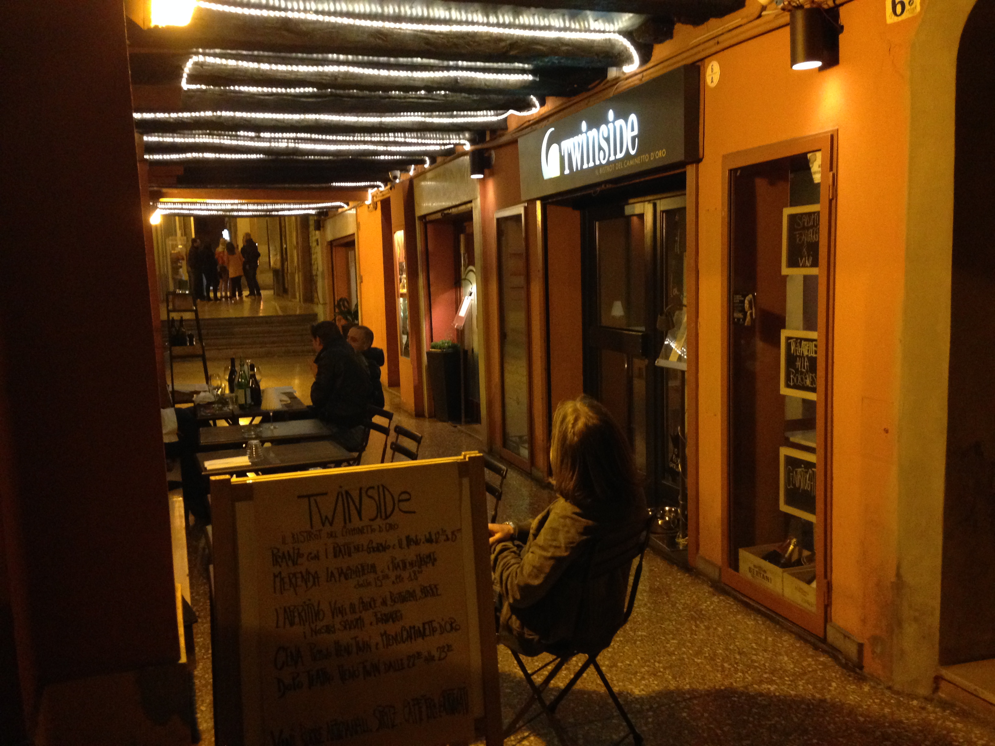 Siamo al Twinside, il bistrot del Caminetto d ‘oro, in Via dei Falegnami, a Bologna, ovvio.