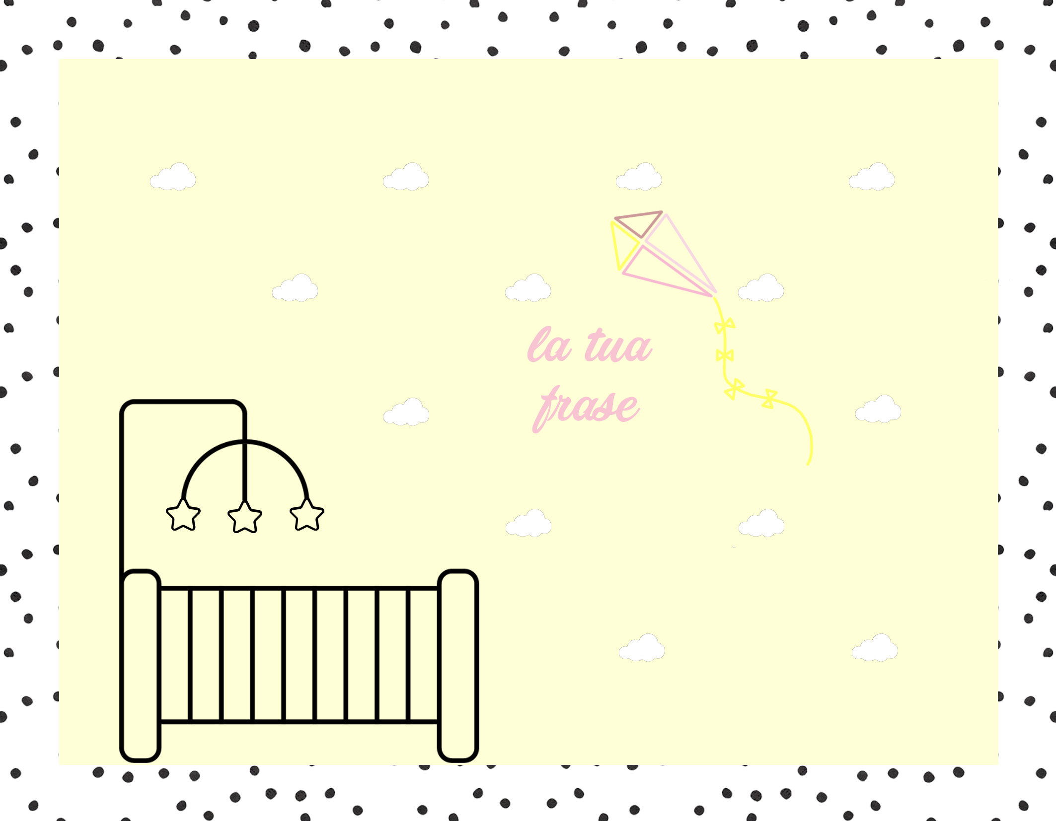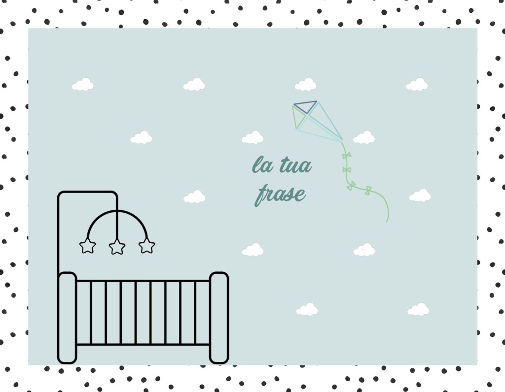 Un pattern di nuvolette e un dolcissimo aquilone faranno da cornice alla vostra frase di benvenuto!